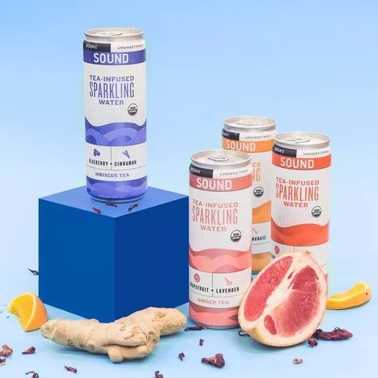 总部位于纽约的Sound公司最近推出了新的罐装气泡茶系列,包括含有45mg咖啡因的血橙+香草红茶、橘子+柠檬草绿茶,以及两种不含咖啡因的柚子+薰衣草姜茶和蓝莓+肉桂芙蓉茶等风味。产品包装为铝罐包装,每罐12盎司,价格为1.99美元,低于品牌旗舰产品2.49美元的单价。该产品于今年4月通过与Dora’s Naturals的分销合作于纽约推出,并在JFK和LaGuardia等机场发售。Sound联合创始人Salim Najjar表示,推出气泡茶是出于提高产品透明度的需求,并为消费者提供更便宜的健康产品。
