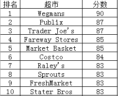 市场调查公司Market Force Information的最新年度调查中,Wegmans连续第三年被评为美国最佳超市(杂货)连锁店。