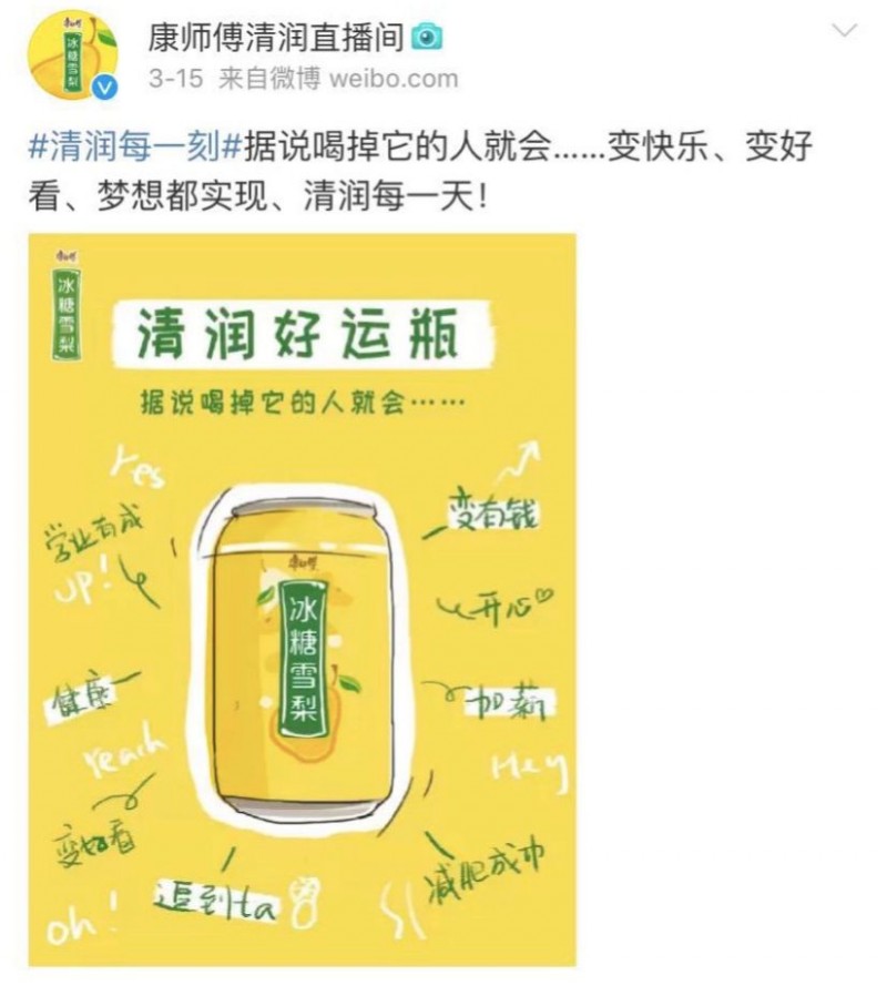 而康师傅冰糖雪梨利用其官方微博@康师傅清润直播间所进行的互动导流,更是值得一说。