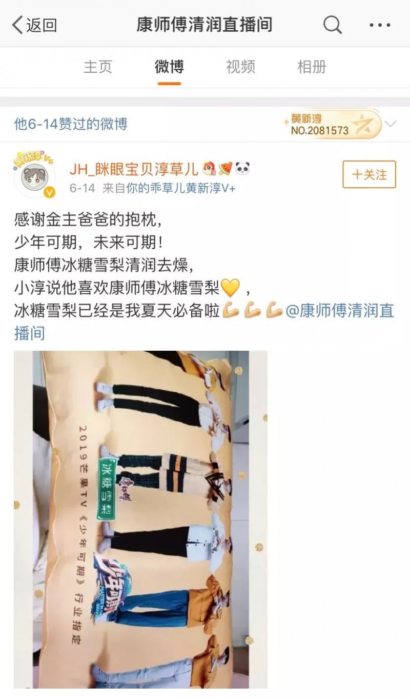康师傅冰糖雪梨精准把握了粉丝对偶像的“养成式姨母心”,号召粉丝微博留言为偶像谋福利。