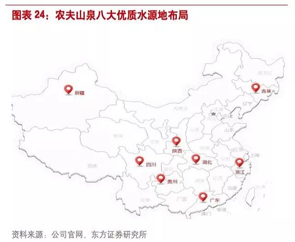 瓶装水行业内存在“500公里”的经验理论,若运输半径超过500公里,运输成本可能将蚕食利润,定价1、2元的包装水很难盈利。农夫山泉依托八大优质水源基地,建立了遍布全国的分销网络,在渠道精耕下沉方面做得更加透彻。