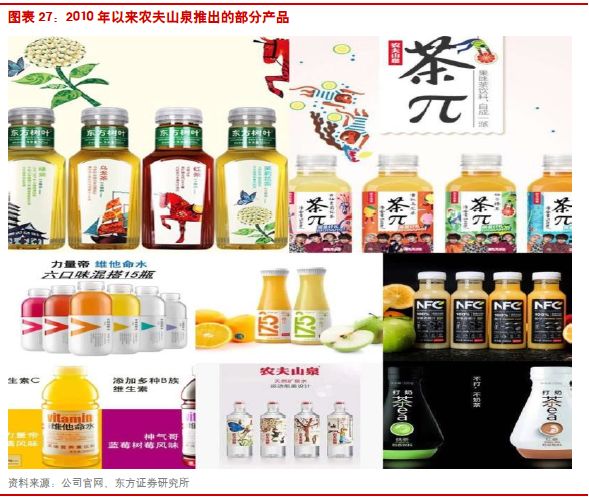 农夫山泉也是一家极具创新精神的企业,近年不断有新产品问世。公司新品均主打“健康”、“清淡”路线,外包装或新颖时尚,或富有艺术气息、符合东方审美,吸引了消费者的眼球。