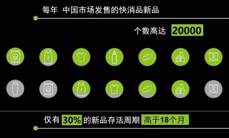 中国每年有数以万计新品面市,但70%的新品存活周期不到18个月。快消公司正面临四大创新挑战——快速变化的消费者需求,缺乏具有足够市场潜力的创新性战略产品,成本高且投资回报率较低,上市速度较慢。