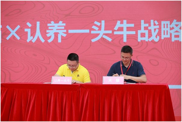 发布会上,认养一头牛与天猫签订“天猫 3 年打造 10 亿品牌”战略合作协议,还与谦寻、花生日记分别签订了战略合作协议,并举行了聚划算卖空启动仪式,现场认养了 1000 头奶牛。