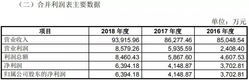 招股说明书显示,2016~2018 年,祖名股份实现营业收入分别为 8.50 亿元、8.63 亿元和 9.39 亿元,归属公司股东的净利润分别为 3702.81 万元、4148.87 万元和 6394.18 万元。