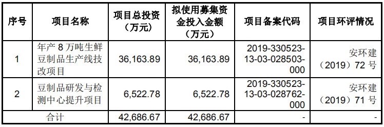 据悉,祖名股份本次所资金投资项目全部围绕公司的主营业务和发展战略展开。“年产 8 万吨生鲜豆制品生产线技改项目”的实施将扩大公司生鲜豆制品产能,巩固公司的市场地位;“豆制品研发与检测中心提升项目”将完善公司产品研发体系,提高产品品质。上述募集资金投资项目实施后,将进一步提升公司的市场竞争力与盈利能力。