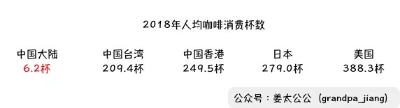 来看几组数据:全球咖啡消费市场12万亿,中国咖啡700亿;中国大陆人均消费咖啡6.2杯,美国的人均消费咖啡是388.3杯……