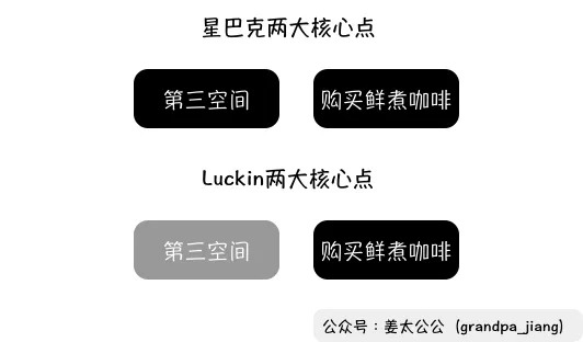luckin并不是直接硬刚星巴克,而是退出星巴克、coata等对于第三空间的争夺,专注于鲜煮咖啡的售卖。