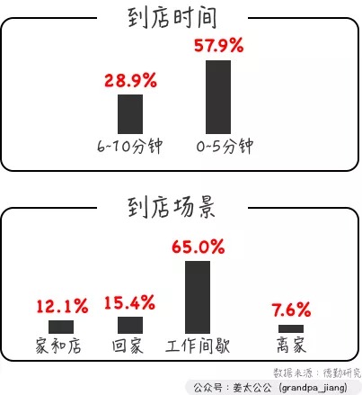 1、57.9%的用户到店时长平均1-5分钟,基本上90%的用户到店时长都控制在10分钟之内