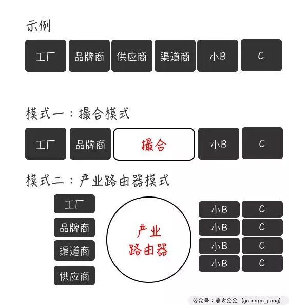 产业路由器的改变了行业结构。它把小B结合形成了一个大B。