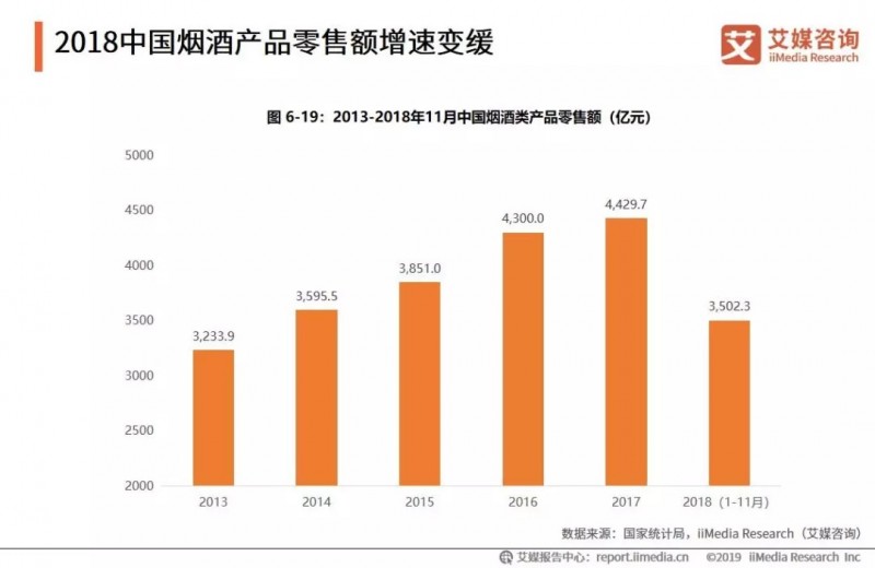 2018中国烟酒产品零售额增速变缓,2018年1-11月,中国烟酒产品销售额为3502.3亿元。在酒类产品中,中高端白酒、进口啤酒和进口葡萄酒销售额上涨,分别同比增长22.0%,15.0%和5.0%。中国休闲食品规模不断扩大,预计2020年接近三万亿元。在销售渠道方面,电商渠道的销售占比不断提高,