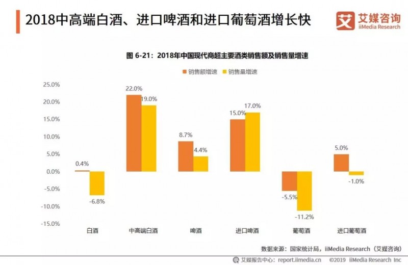 2018中高端白酒、进口啤酒和进口葡萄酒增长快
