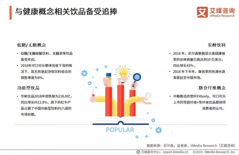 2018年休闲食品的线上市场规模同比增长23.4%。2018年中国饮料行业持续低迷,饮料产量同比下降13.1%。但低糖无糖、发酵饮料、膳食纤维等健康概念饮品备受消费者欢迎。随着居民消费水平的提高,中国消费者对高端快消品购买意愿的增加,未来中国快消品行业规模将继续稳步上升。