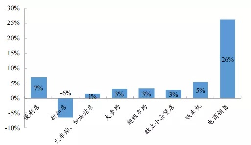 电商和便利店渠道增长趋势将持续。由于城镇化和大城市虹吸效应使得中产阶级和都市居民群体壮大,便利店、精品超市和贩卖机三个渠道增长最快。对比日本、韩国和中国香港的情况,中国便利店渠道和电商渠道占比仍然偏低。2013-2018年,电商和便利店成为行业销售量增长最快的两个渠道,复合年增长率分别为26%和7%的增长。我们认为,电商和便利店渠道的增长趋势已经形成,并随着城镇化的推进,渠道方面将会形成一个多层次、线上线下平衡与融合的局面。
