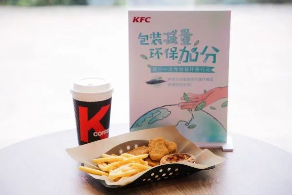去年,肯德基开始在门店推出“可循环餐篮”代替原本的一次性纸盒。