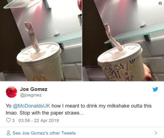 去年,麦当劳从英国开始试行用纸质吸管代替塑料吸管,但是试行过程并没有想象中顺利。由于吸管工艺的问题,纸质吸管很快就会变软,会影响到顾客的食用过程,因此引发一些争议。