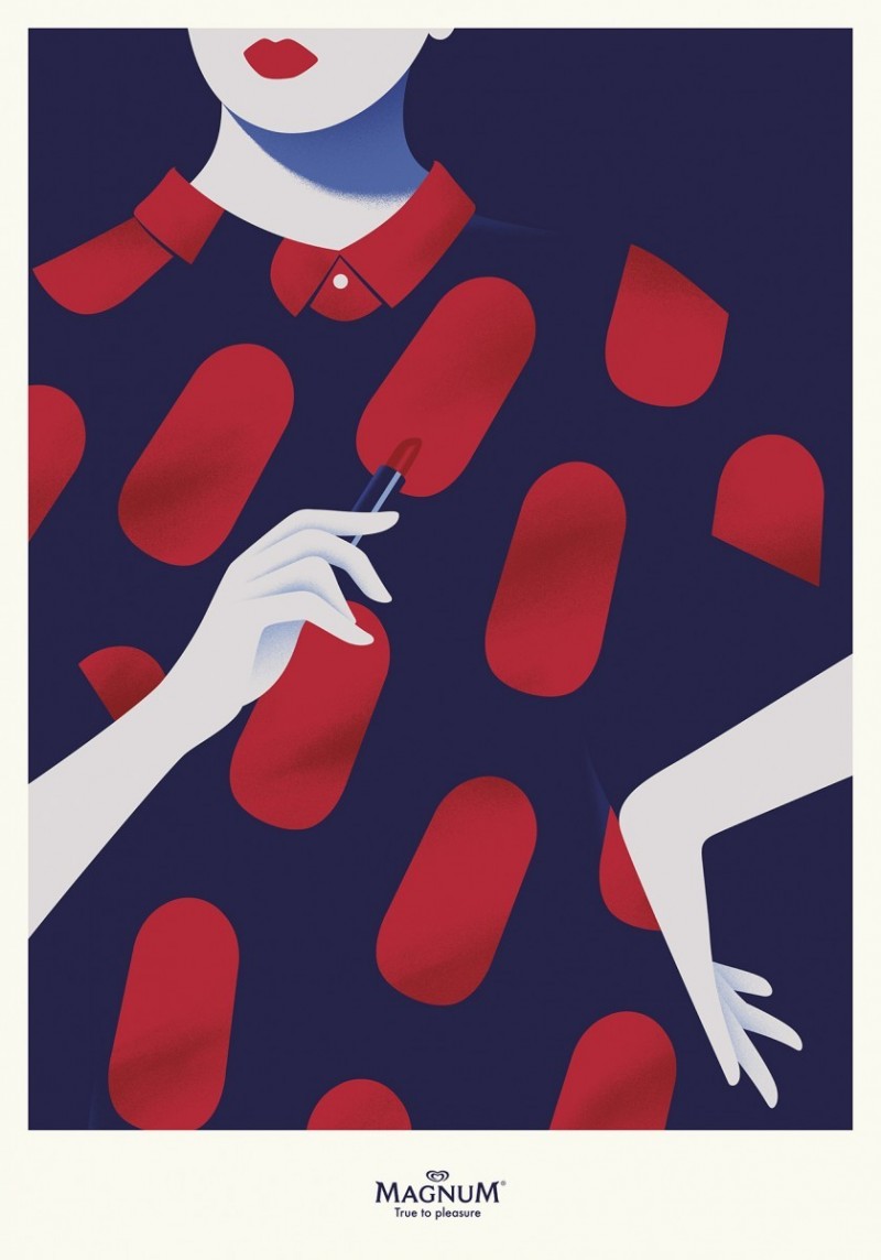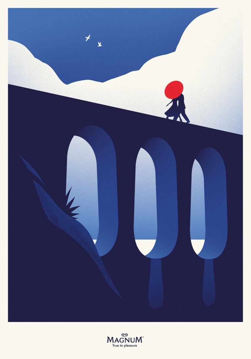 梦龙这组海报相比于平时镶金式的富贵风,显得有点低调。英国自由插画艺术家Thomas Danthony为梦龙设计了这组个人艺术风格的海报。