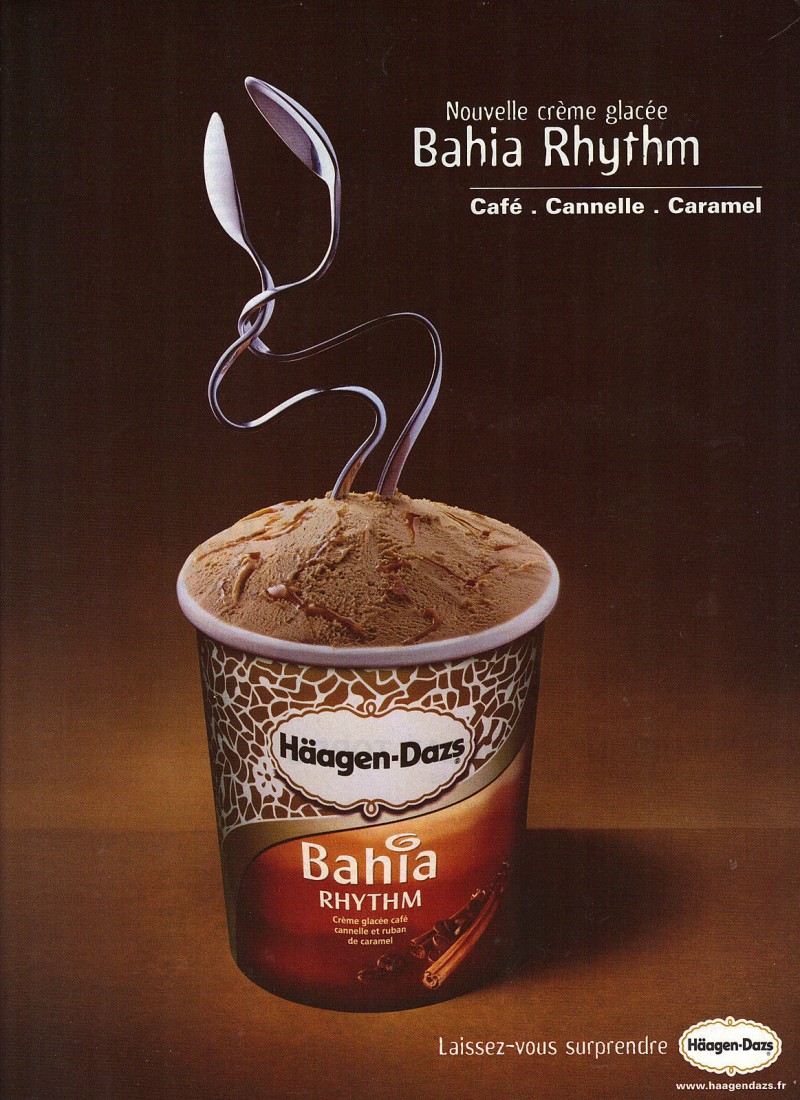 冰淇淋产品的广告除了放大冰淇淋产品主体以外,还可以让挖冰淇淋这个动作意犹未尽。下面这组海报——勺子简单明了地插在冰淇淋上,却让人不自觉地多想。