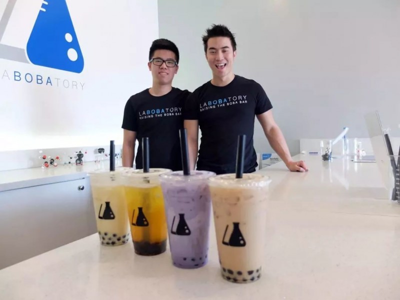 这家奶茶店的名字和logo充满了创新实验室风格,图片来自洛杉矶吃货小分队