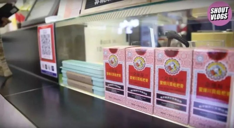 随后又传到东南亚国家,服务员会把念慈菴摆在玻璃柜最显眼的位置,就像国内奶茶店会显眼地摆放XX品牌牛奶、新鲜水果一样,成为店里的最大IP,每个人都知道它意味着什么。