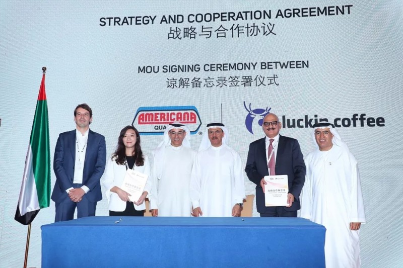 Americana集团创立于1960年,是中东地区和北非地区最大及最成功的集团企业之一,旗下品牌遍布全球20多个国家,在餐饮和食品行业拥有近60年的丰富经验;瑞幸咖啡是全球领先的移动互联网、大数据和AI技术驱动的科技公司,也是创新的新零售模式典型代表,通过最新技术的应用和模式创新,从根本上改变了传统咖啡行业的交易结构和用户体验。在中国商务部副部长俞建华和阿联酋经济部部长苏尔坦·曼苏里的共同见证下,瑞幸咖啡创始人、CEO钱治亚和Americana集团CEO Kesri Kapur在北京签订了战略合作框架协议 。