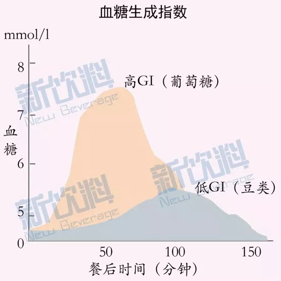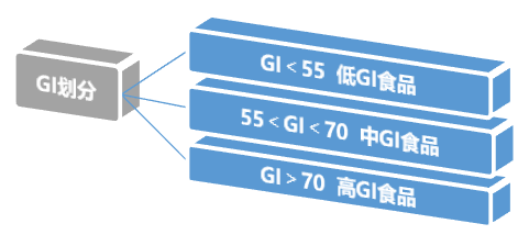 根据GI值的大小可将富含碳水化合物的食物分为低、中、高三个类别,当血糖生成指数在55以下时,可认为该食物为低GI食物;当血糖生成指数在55~70之间时,该食物为中等GI食物;当血糖生成指数在70以上时,该食物为高GI食物。高GI食物进入胃肠后消化快,吸收率高,葡萄糖释放快,葡萄糖进入血液后峰值高;低GI食物在胃肠中停留时间长,吸收率低,葡萄糖释放缓慢,葡萄糖进入血液后的峰值低,下降速度慢。因此,低GI食物对需要控制血糖人群的膳食选择有着重要意义。