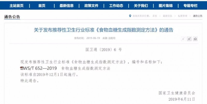 我国目前还没有关于GI标识的相关指南或规定,但在2019年6月20日,颁布了《WS/T 652-2019 食物血糖生成指数测定方法》,本标准为我国首次颁布检测GI的全国性标准,规范了GI的测定程序,为我国预包装食品GI标识提供了依据和技术支持,也预示着GI标识在我国的推广施行是一种必然趋势。