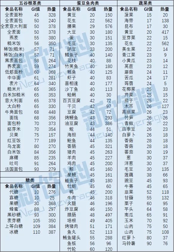 自Jenkins等于1981年首次公布了62种食物的GI值以来,许多学者都对食物的GI值进行了测定和深入研究。我国最权威,也是唯一的食物GI表是由中国疾病预防控制中心营养与健康所杨月欣研究员在《中国食物成分表2004》中发布,2018年在《中国食物成分表标准版》附表中又进行了更新。