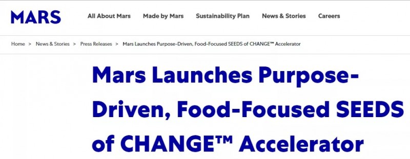 在今年3月,玛氏宣布推出名为“SEEDS of CHANGE™(变革之源)”的加速器项目,旨在扶持食品初创企业的增长和未来发展,但开展范围并不包括中国。
