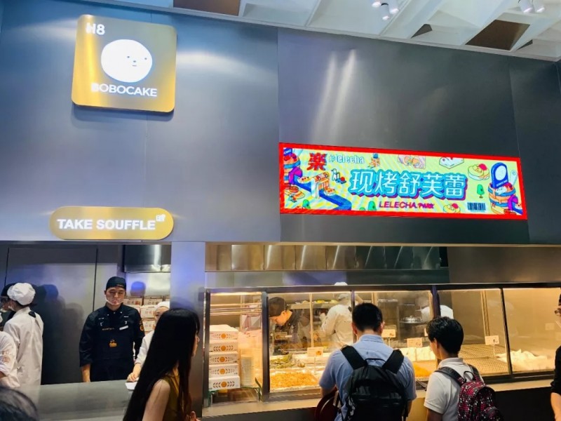 该档口名为“BOBOCAKE现烤舒芙蕾LAB”,现烤舒芙蕾大家一定都不陌生,路过时飘出的香味就能吸引不少小伙伴。