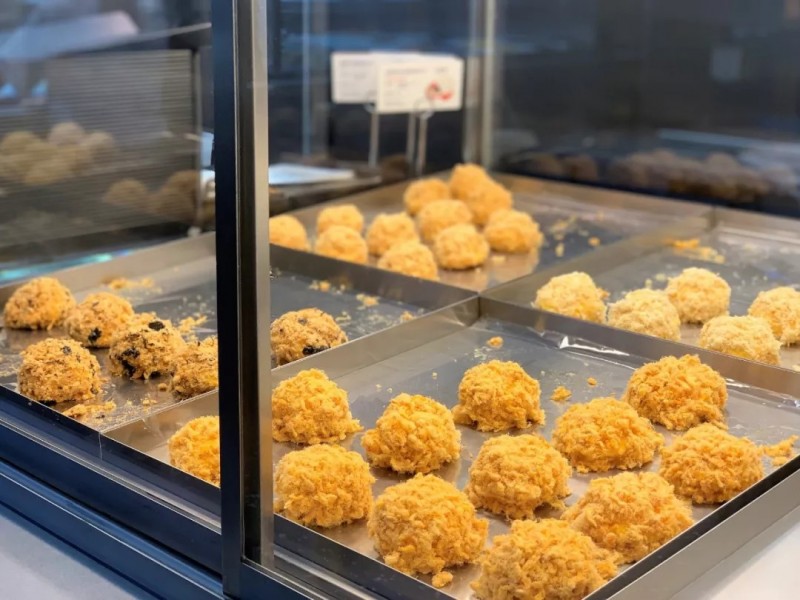该档口没有菜单,并且只限定售卖一款产品,每月更新,是一个十分任性的档口。本月售卖的是魔方面包,其中还有与米其林星级主厨合作的爆浆流沙魔方面包、香酥焗叉烧魔方面包。