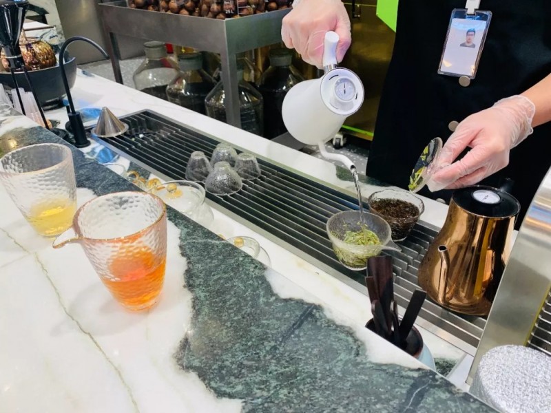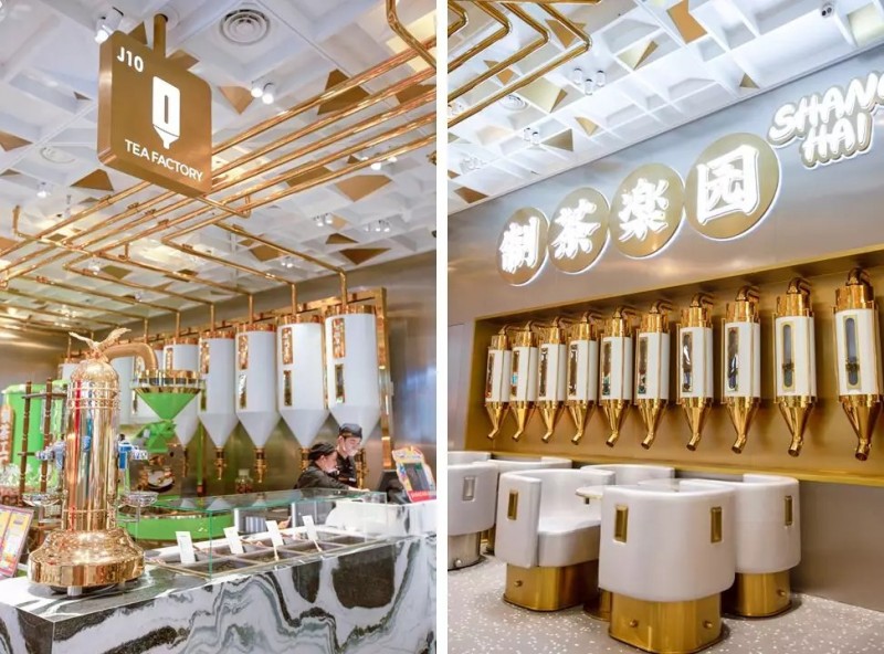 去年,LELECHA楽楽茶首家制茶工厂店在上海环球港开业,创新的将炒茶设备引入店内,此次制茶乐园里,LELECHA楽楽茶延续该概念,消费者不仅可以在现场看到茶叶烘焙、揉捻的过程,还可以试喝调茶师冲泡的精品茶,仪式感十足。