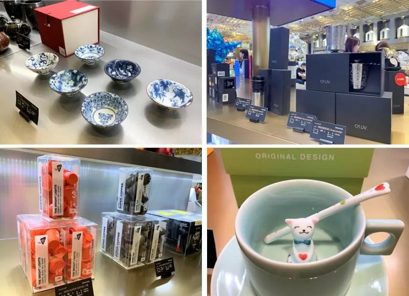 引入“新零售”和“生活方式”的概念,店内售卖有非常多与茶、咖啡相关的周边产品,例如:首次亮相的“楽楽茶牌制茶雪糕”(有专门的档口,产品目前正在筹备当中)、森晒小青柑普洱茶、来自景德镇的粉青侧把茶具组、造型十分可爱的柯基马克杯,小巧迷你的Super Coffee......