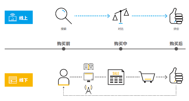 在PC时代,线上线下的购物流程都是线性的,两者被明显地区隔了。