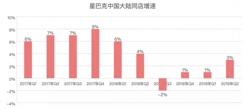 虽然在接入外卖业务后的接下来的几个季度,星巴克同店销售则又恢复增长,2019年Q1、2019年Q2分别增长1%、3%,但与星巴克美国本土4%的同店销售相比,这个数据不能算乐观。