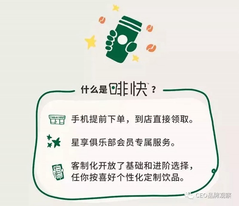 星巴克推出“啡快”概念店,对线上“第四空间”填补了一个空白,真正把线上服务也变成可以触摸到的真实体验。