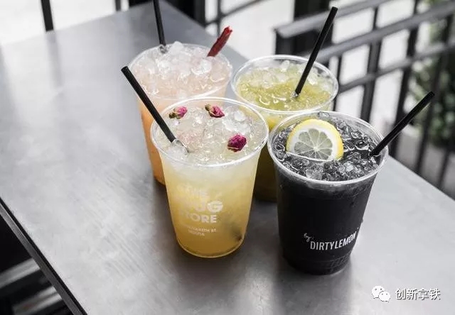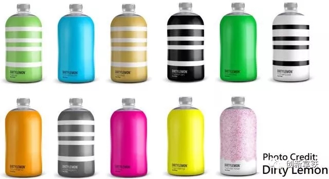 Dirty Lemon的饮料装在色彩鲜艳、设计感十足的瓶子里,冠上「美丽仙丹(beauty elixirs)」、「净化配方(cleansing blends)」等吸引人的文案,每种口味六瓶装售价65美元。