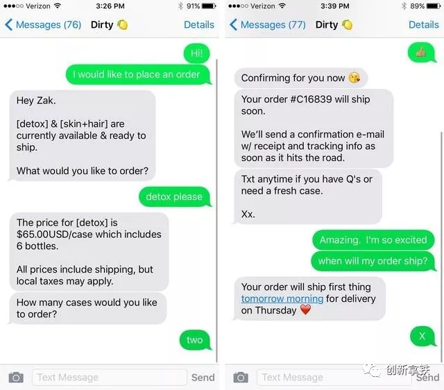 而Dirty Lemon的注册很简单,新客户只要发一封短信到官方号码,随后会收到一个加密链结,输入信用卡和收货地址,之后下单只要传短信告知品项和数量就行,费用将从信用卡自动扣款。