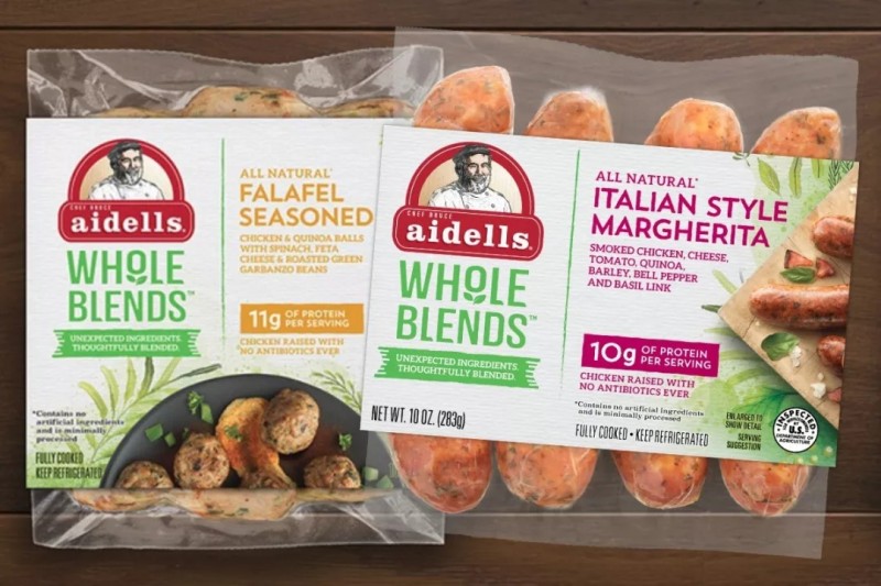 泰森食品旗下的品牌Aidells®最近推出了Aidells Whole Blends™,这是一次突破性的组合尝试,包括香肠串和鸡肉制成的肉丸,以及奶酪和谷物、黑豆、鹰嘴豆、扁豆等植物成分的混合搭配。