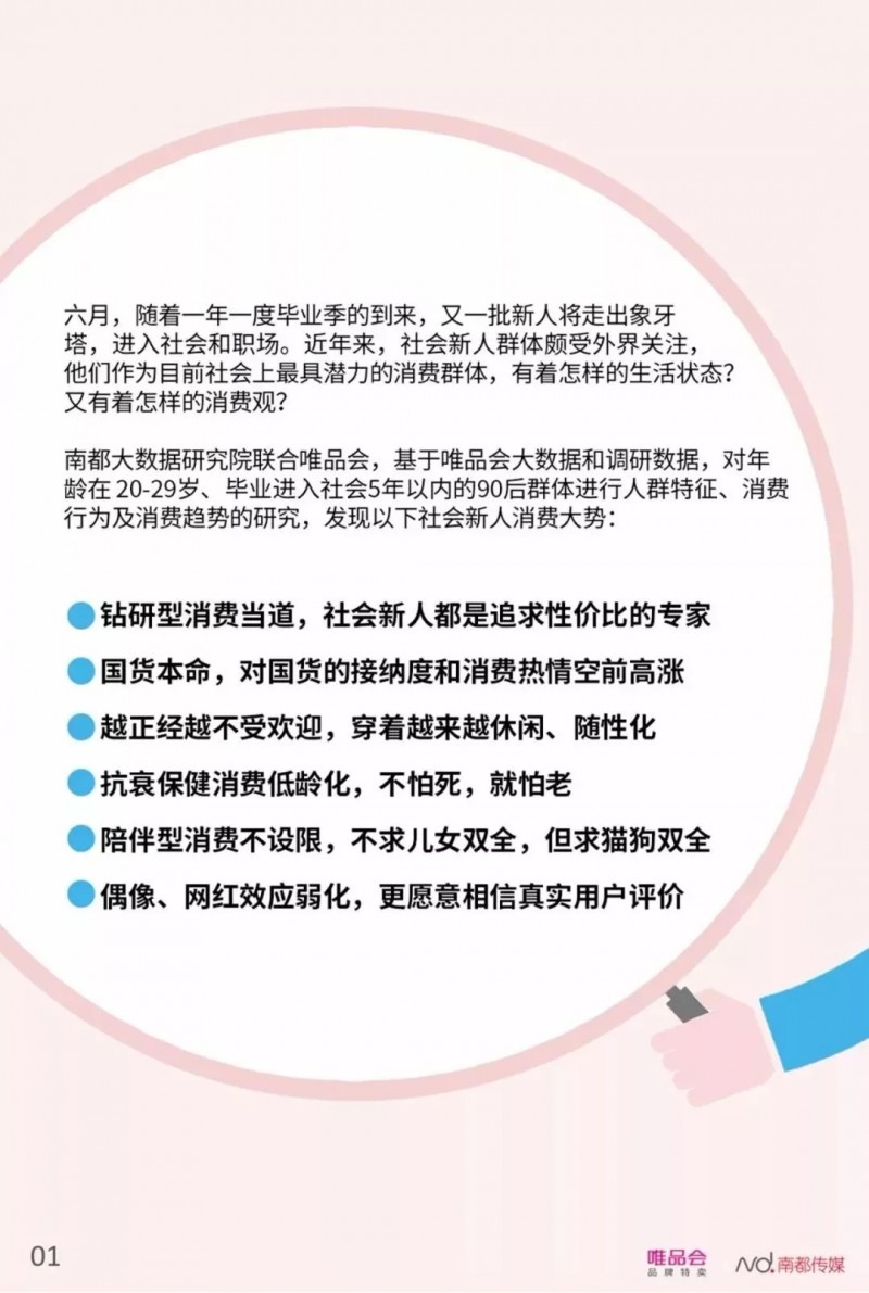 此次唯品会发布《报告》,既是平台年轻化群体的消费表达,也是在毕业季对90后职场新人的一次集中关注,同时也有助于唯品会更充分地发挥品牌特卖“好货不贵”优势,服务日渐扩大的年轻客群。