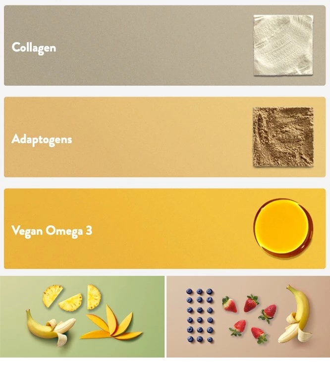 目前Buddy Nutrition提供26种不同的基础营养素供选择,包括胶原蛋白、叶酸、咖啡因和各种维生素,消费者通过个性定制化组合可能将会产生16亿种不同的产品。另外,还提供蓝莓草莓和芒果菠萝的两种基本口味,能满足素食和易过敏等特殊人群等需求。消费者完成Buddy Nutrition的在线调查问卷后,就会生成一份专属的个人营养需求报告,公司会根据消费者的需求定制专属的具有膳食补充剂功效的健康零食。