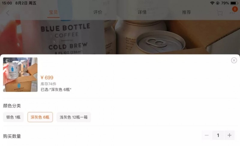 6瓶装的蓝瓶咖啡淘宝代购要699元