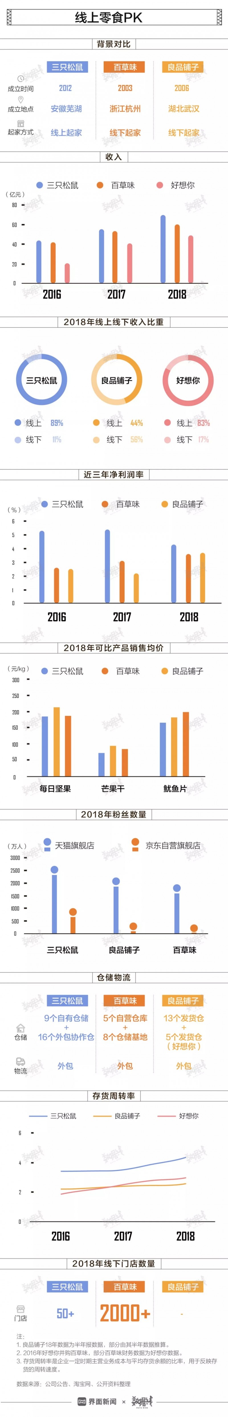 从收入、净利润、价格、会员数量和存货周转率上来看,起步最晚的三只松鼠最有优势。相反,良品铺子和好想你更注重线下布局,其线下门店数量均已超2000家。