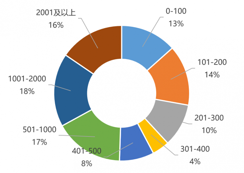 新消费企业规模分布(员工数)