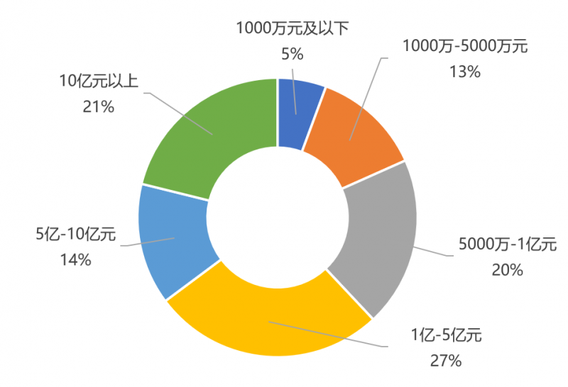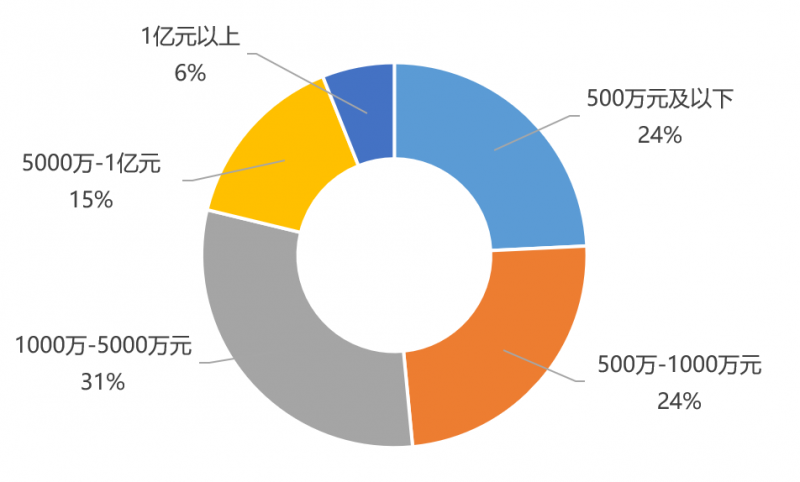 从企业2018年利润分布看,约半数企业利润在1000万元以下,其中又有24%的企业利润在500万以下;同时5000万-1亿元利润以上企业达到15%,亿元以上利润企业达到6%。企业的整体盈利性分布较为均衡。