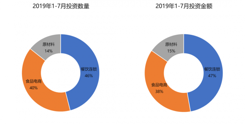 2019年上半年58个获投项目共融资66亿人民币,餐饮连锁、食品电商是获投较多的领域。
