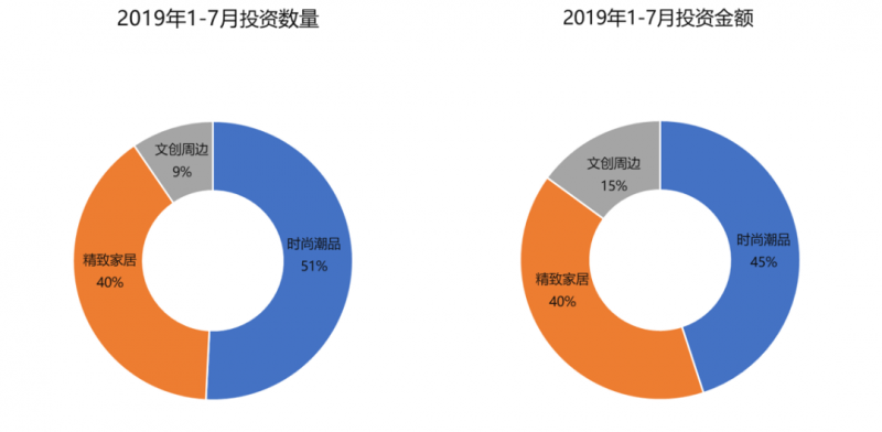 2019年上半年58个获投项目共融资56亿人民币,时尚潮牌是获投较多的领域。
