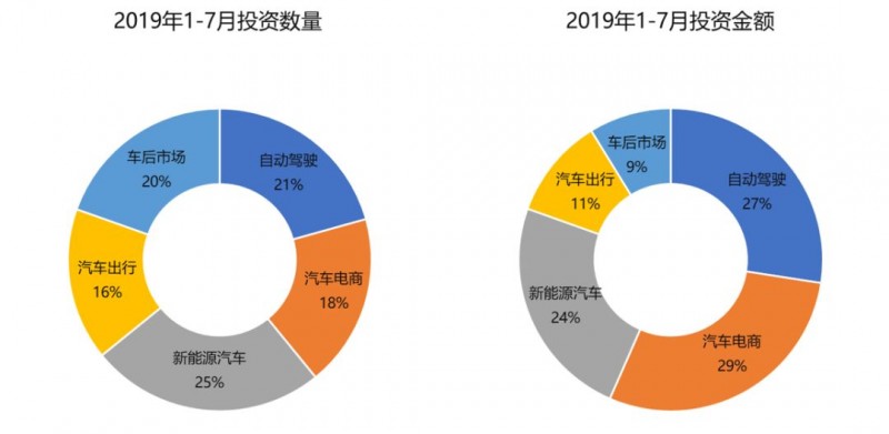 2019年上半年85个获投项目共融资417亿人民币,自动驾驶、新能源汽车和汽车电商是获投较多的领域。