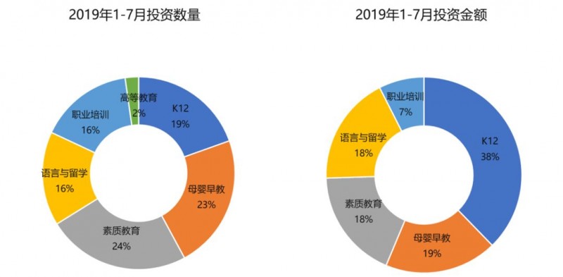 2019年上半年123个获投项目共融资133亿人民币,K12、儿童早教和素质教育是获投较多的领域。