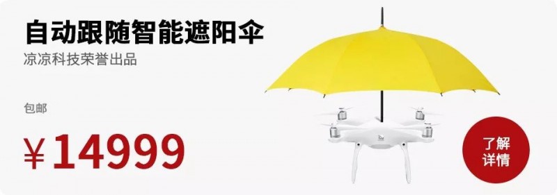 炎炎夏日,自然少不了一把伞。而这款「自动跟随智能遮阳伞」,跟踪你的脚步自动为你撑住,所谓的「如影随行」正是如此!